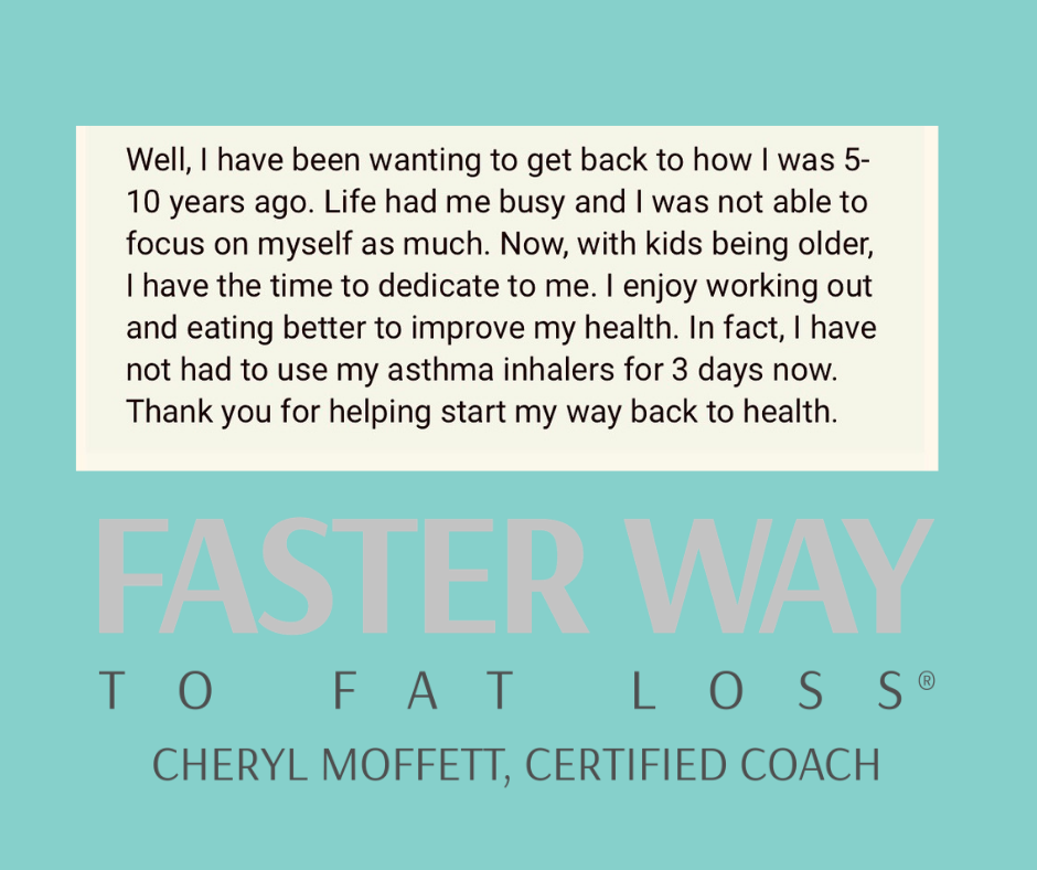 This testimony is dear to me because we have been friends since 1991 when we were lost trying to find our first class for NURSING school. Then we go and marry brothers!!! Holly took back her health and is trusting the FASTer Way To Fat Loss® process to continue to become stronger and healthier each day. I can not wait to see what the full 6 weeks will bring her. This is Holly’s 2-week (3 weeks counting prep week) testimony!!! “Have not used my inhaler for 3 days now”