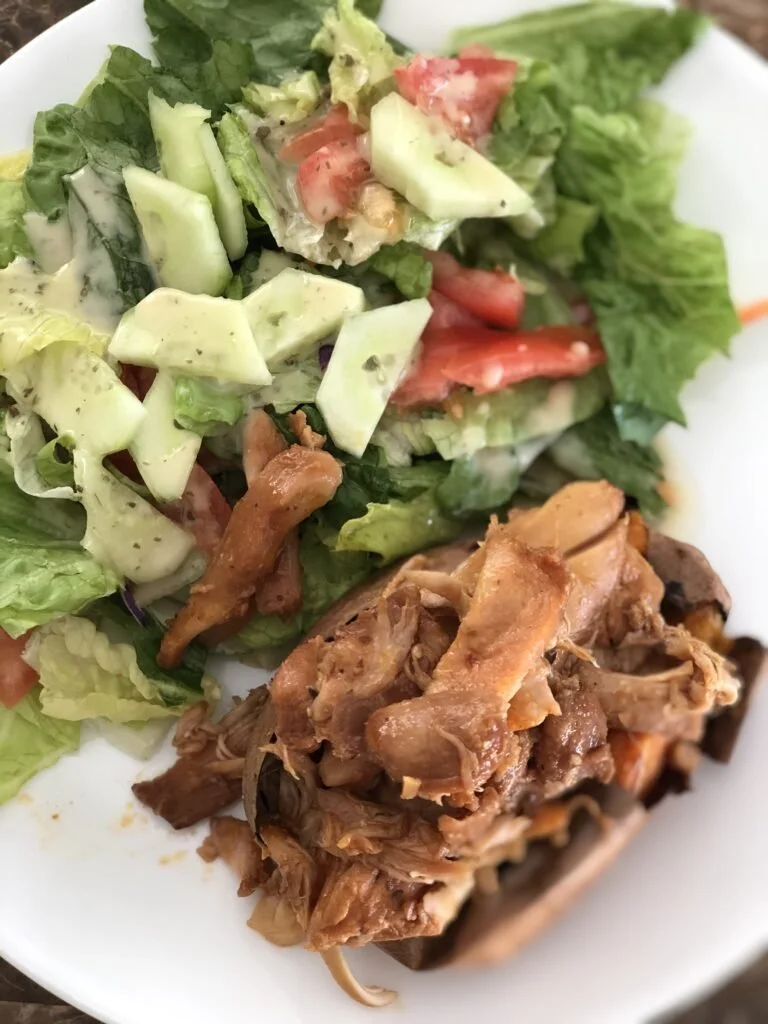 Stuff into a baked sweet potato. If you are carb cycling you can have the sweet potato if you planned your carbs right, if not serve it over a big green salad.
